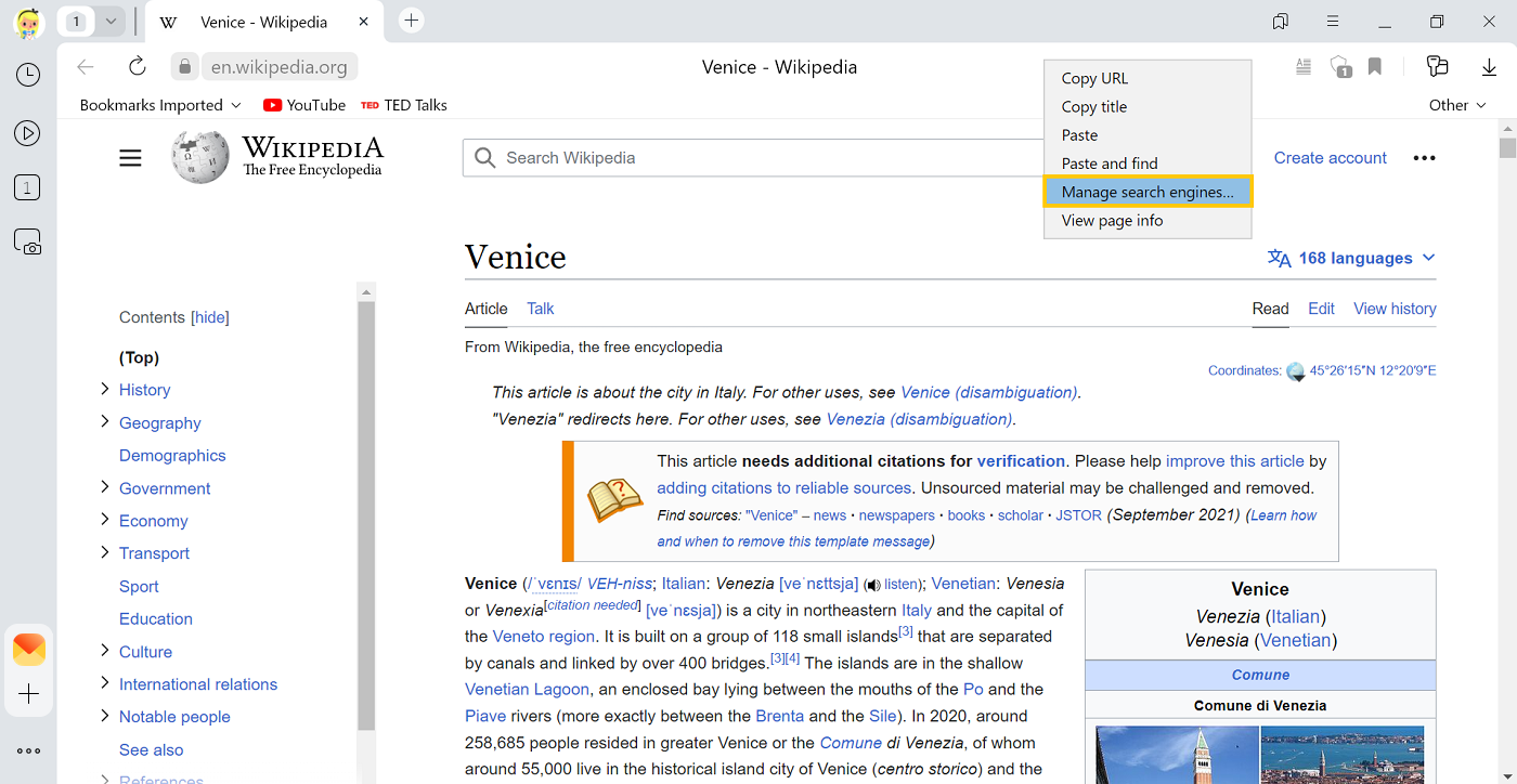 In the context menu, select Manage search engines...