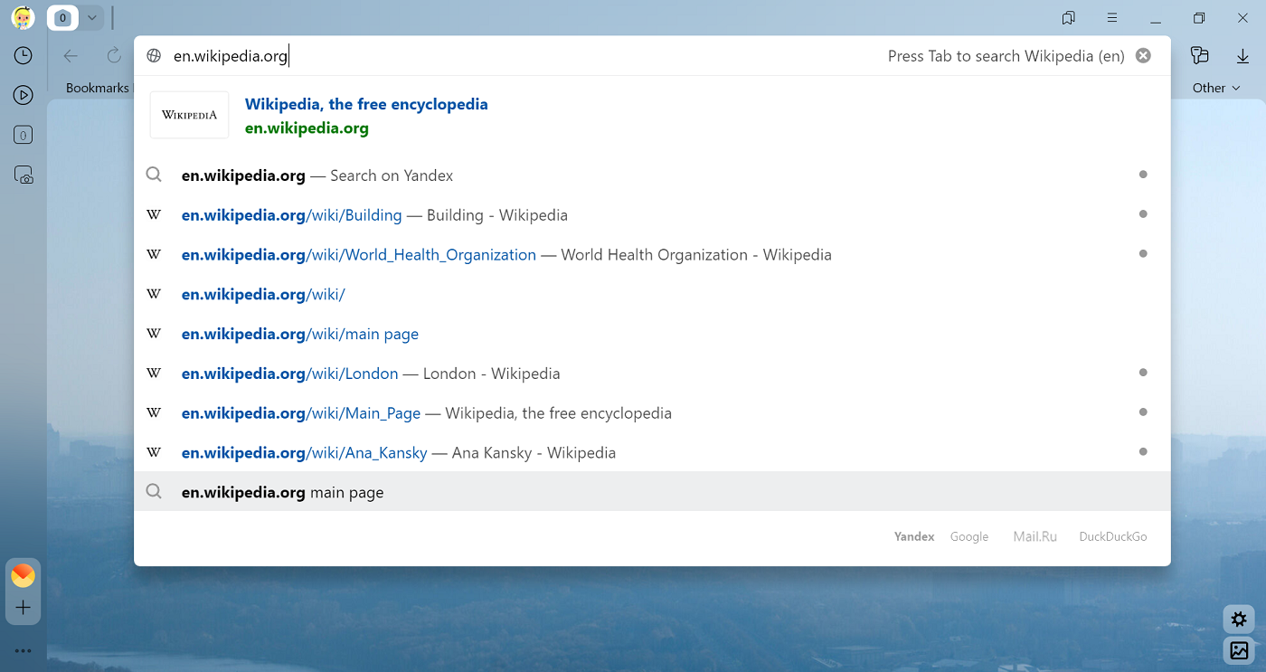 If you entered the page address incorrectly, Yandex Browser will give you links to existing pages with similar addresses, or suggest searching for it in Yandex.
