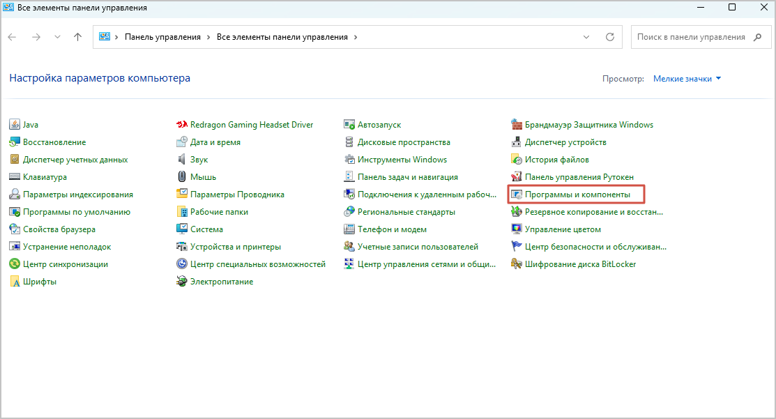 Нажмите Программы и компоненты или Программы → Удаление программы.