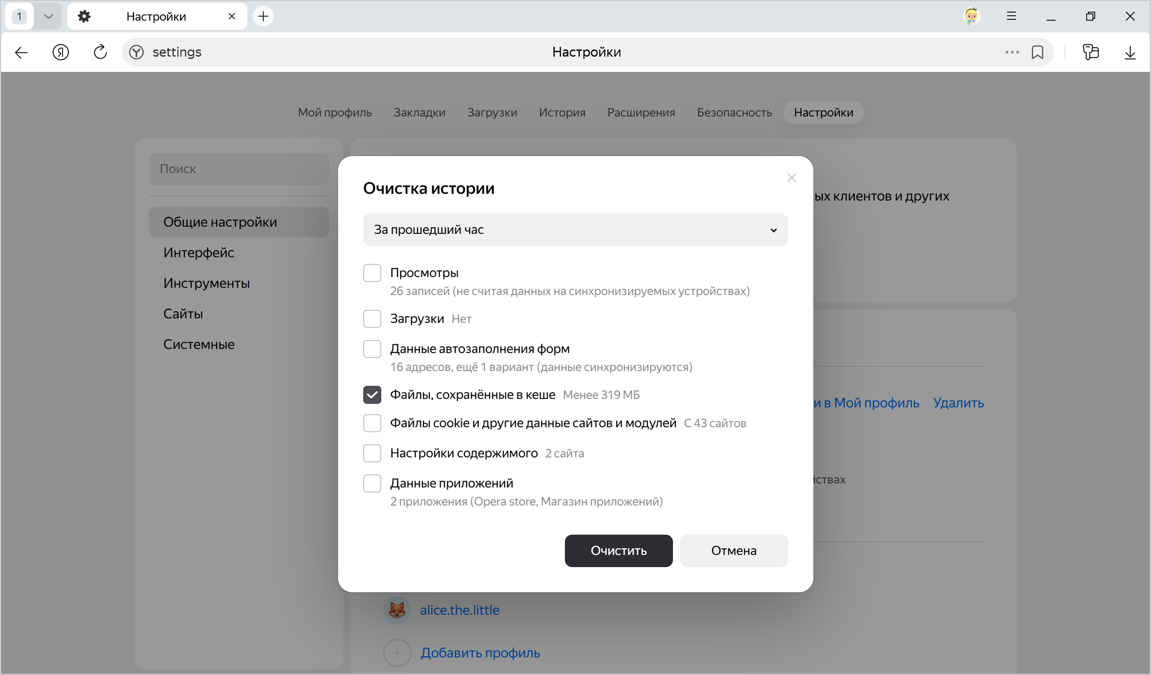 Нажмите Настройки Яндекс Браузера → История → Очистить историю либо сочетание клавиш Ctrl + Shift + Del (в Windows) или Shift + ⌘ + Backspace (в macOS).